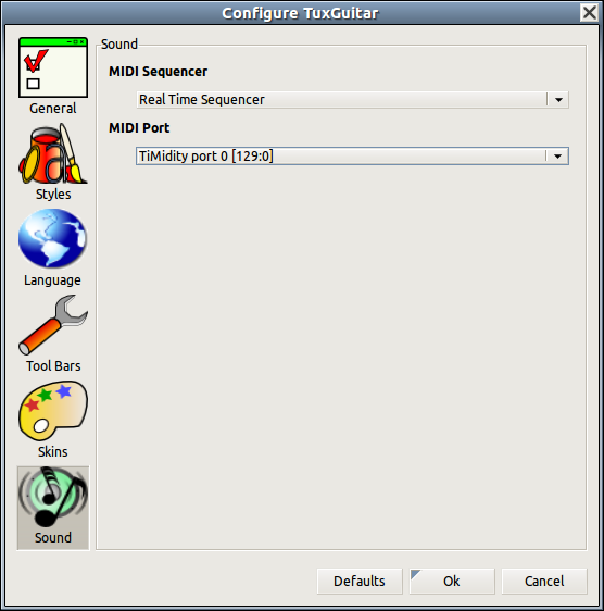 For some reason though, timidity daemon isn’t started with boot up, so I had to start it manually. Before launching tuxguitar, launch following command from terminal: